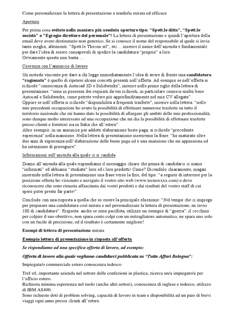 Lettera presentazione in tedesco